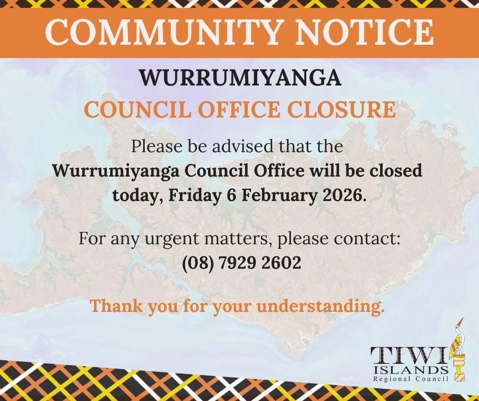 Please be advised that the Wurrumiyanga Council Office will be closed today, Friday 6 February 2026.