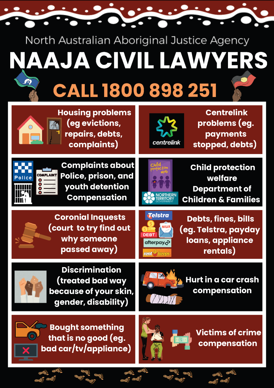 The North Australian Aboriginal Justice Agency (NAAJA) Civil Lawyers will be visiting Wurrumiyanga to provide free legal support and advice.