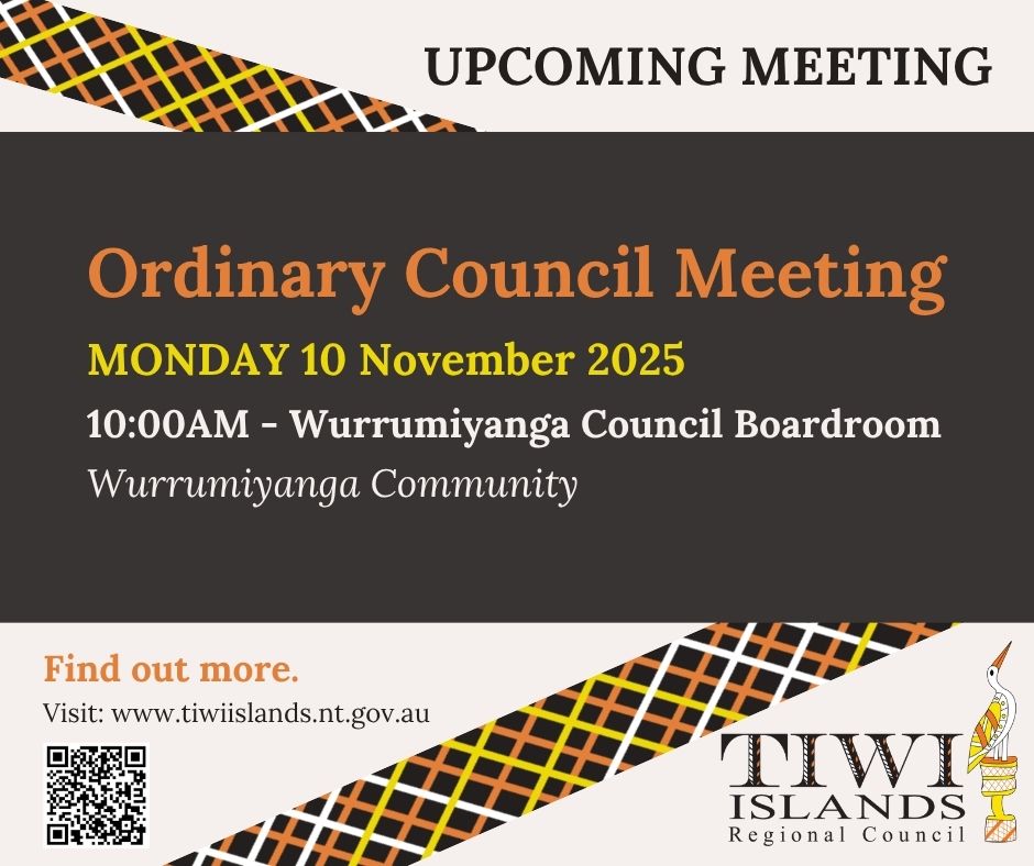 All Council Members are advised that an Ordinary Council Meeting will be held at the Wurrumiyanga Council Boardroom.