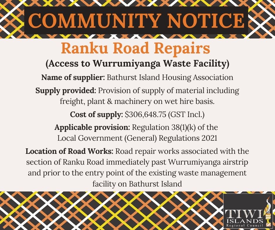 Public notice of advertisement – Ranku Road Repairs for Access to Wurrumiyanga Waste Facility