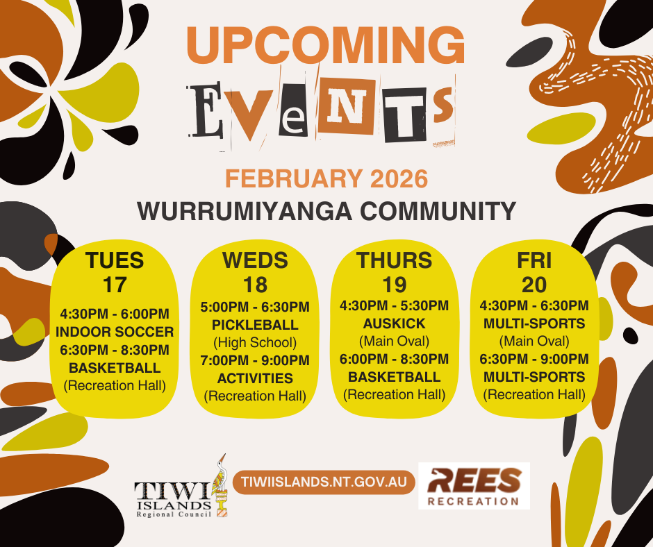 There’s a great line-up of evening sport and recreation activities happening this week in Wurrumiyanga. Everyone is welcome to come along and join in!